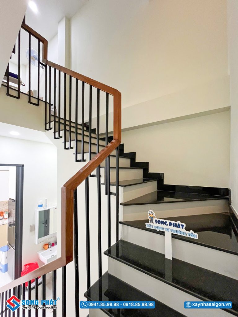 Cầu thang được thiết kế theo tiêu chuẩn an toàn và thuận tiện sử dụng.