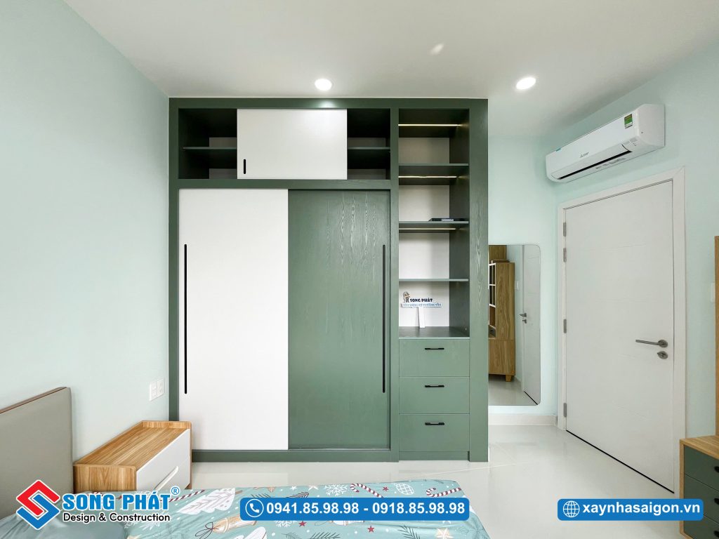Tủ làm gọn về 1 bên, không chiếm nhiều không gian.